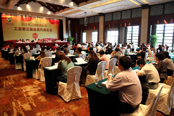 9月21日至22日,集團(tuán)公司工會(huì)第三屆會(huì)員代表大會(huì)在臨安中都青山湖畔大酒店召開,來自集團(tuán)公司各企業(yè)80名會(huì)員代表參加了會(huì)議。集團(tuán)公司黨委書記、總經(jīng)理沈志云和省總工會(huì)副主席姚炳甫蒞臨會(huì)議并致辭,集團(tuán)公司副總經(jīng)理孟慶武、徐旭陽、吳敏,省直屬企業(yè)工會(huì)工作委員會(huì)主任吳育杭、經(jīng)費(fèi)審查委員會(huì)主任葉榮茂,集團(tuán)公司原工會(huì)主席殷長才出席會(huì)議。