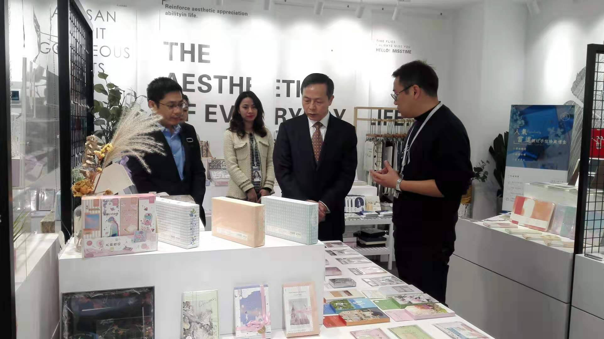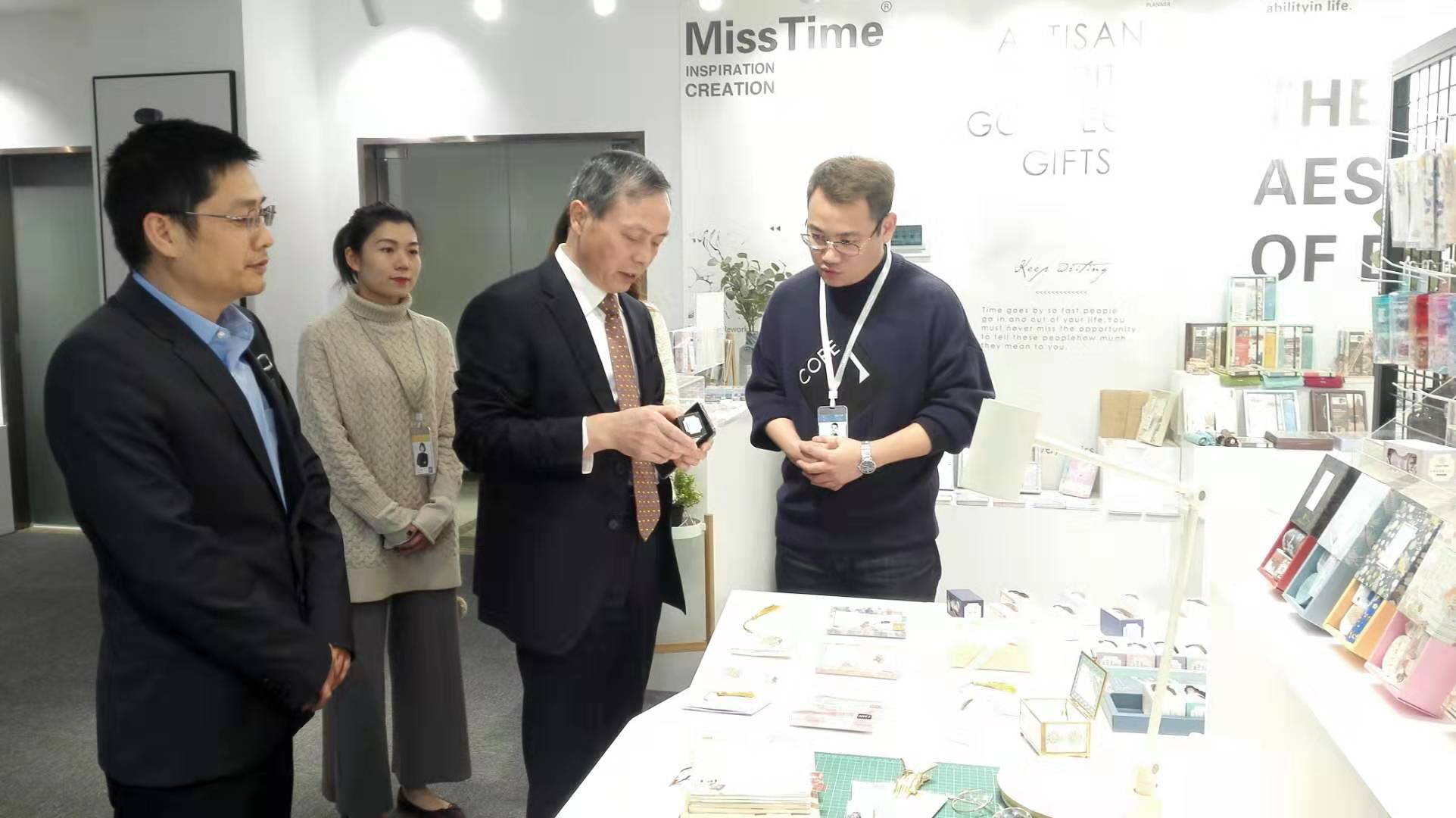 虞岳明一行先后考察了拾光藝創(chuàng)文創(chuàng)產(chǎn)品展示區(qū)、文創(chuàng)內(nèi)容輸出演示區(qū)和產(chǎn)品組、品牌組、插畫(huà)組等員工工作區(qū),并與拾光藝創(chuàng)核心團(tuán)隊(duì)進(jìn)行座談。在聽(tīng)取相關(guān)情況匯報(bào)后,虞岳明對(duì)拾光藝創(chuàng)工作給予充分肯定。一是拾光藝創(chuàng)團(tuán)隊(duì)年輕富有活力,協(xié)作精神好,危機(jī)意識(shí)強(qiáng)。二是善于運(yùn)用頭腦風(fēng)暴,注重產(chǎn)品創(chuàng)意設(shè)計(jì),注重提供增值服務(wù),業(yè)務(wù)發(fā)展勢(shì)頭好。三是年輕黨員多,企業(yè)文化很有特色。他指出,拾光藝創(chuàng)發(fā)展實(shí)踐證明,集團(tuán)公司大力培育工美文化主業(yè),推進(jìn)文化與旅游、創(chuàng)意、數(shù)字經(jīng)濟(jì)深度融合發(fā)展的路子是正確的。