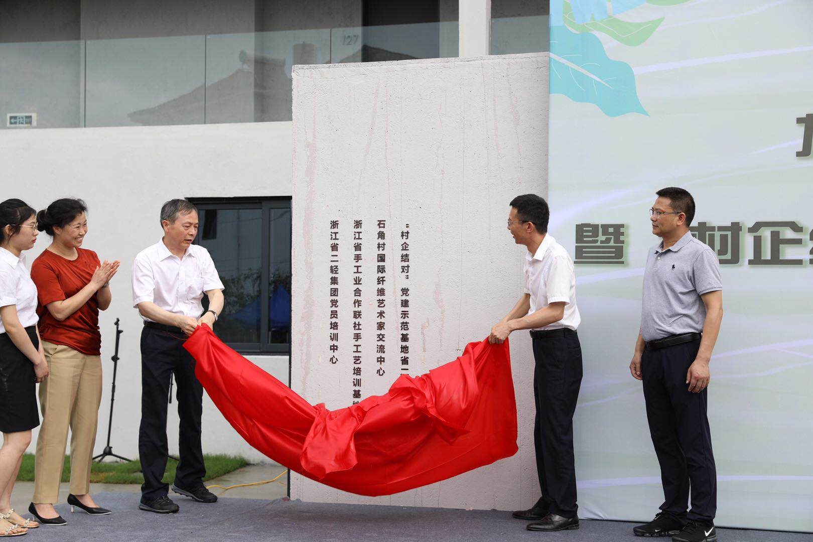 啟動(dòng)儀式上,相關(guān)領(lǐng)導(dǎo)為龍南黨建聯(lián)盟授牌,并分別為省二輕集團(tuán)黨員培訓(xùn)中心、浙江省手工業(yè)合作聯(lián)社手工藝培訓(xùn)基地、石角村國(guó)際纖維藝術(shù)家交流中心、“村企結(jié)對(duì)”黨建示范基地以及消薄項(xiàng)目聽(tīng)澗·靈山江民宿揭牌。